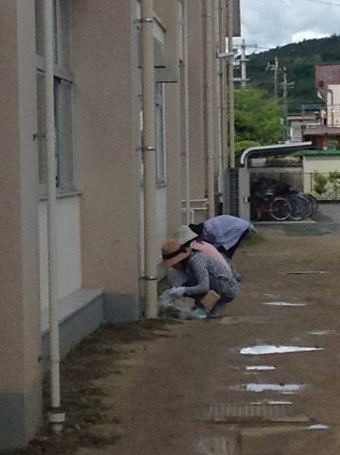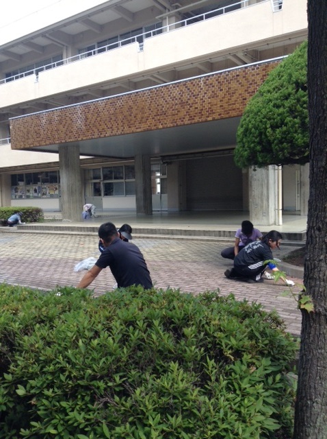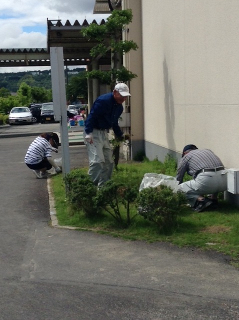 玄関や正門前の花植えと、校舎脇の草抜きを中心に行いました。